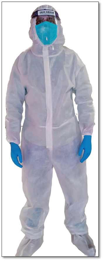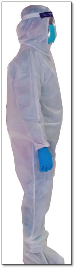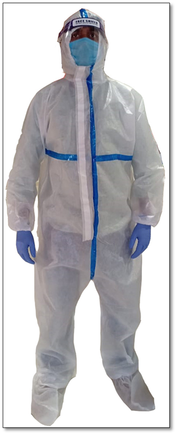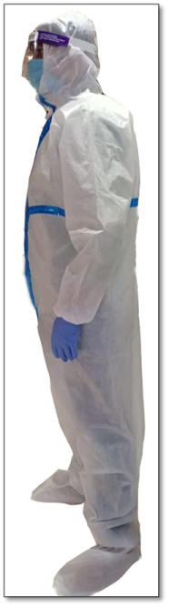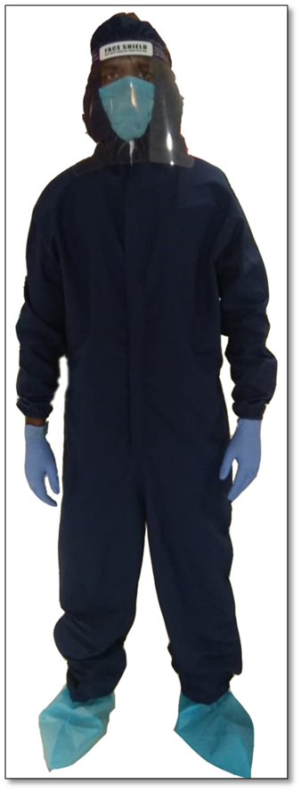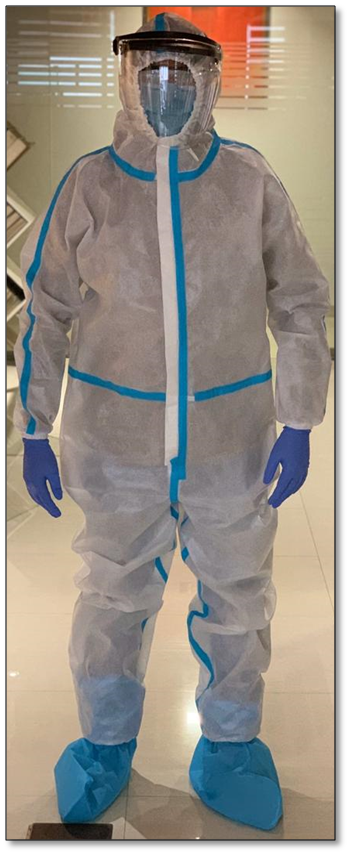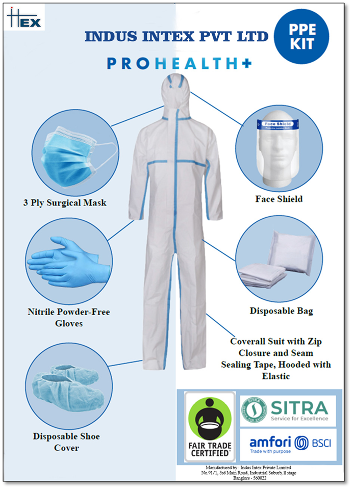 This world class PPE Kit is complete with a 3 layered surgical mask, a face shield, Nitrile Powder free gloves, disposable shoe cover, disposable bag, coverall suit with Zip closure and seam sealing tape, hooded with elastic to give you complete protection.